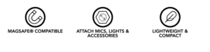 El Magnetic Mount es un sistema de montaje magnético versátil para fijar micrófonos, luces y otros accesorios a cualquier iPhone® con MagSafe® u otro smartphone con una funda compatible con MagSafe. Cuenta con un imán ultra fuerte para una seguridad completa, incluso con un uso vigoroso, y viene con tres accesorios desmontables para una máxima flexibilidad. Esto incluye brazos de zapata fría cortos y largos para grabar en modo horizontal o vertical, además de un brazo largo para montar su smartphone en un trípode, mango o brazo de escritorio para su uso en una amplia gama de aplicaciones de creación de video y contenido.