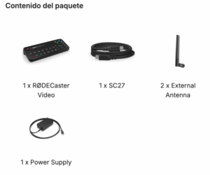 - Control remoto, gráficos y medios asignables por el usuario, creación de escenas personalizadas, mezcla de audio y efectos, y otras opciones avanzadas de configuración a través de RØDE Central