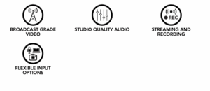 - Capacidad para crear siete escenas complejas con múltiples capas de video, medios y gráficos, que se pueden guardar y activar con solo tocar un botón